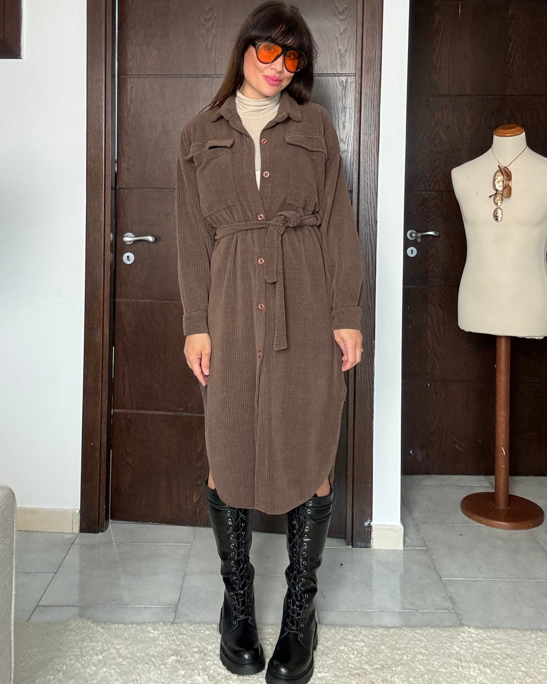 Scamiciata in velluto a costine marrone