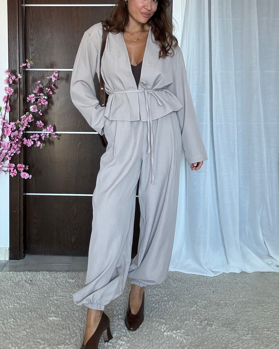 Set 100% cotone composto da pantalone tuta vita alta con coulisse e top a costine e...