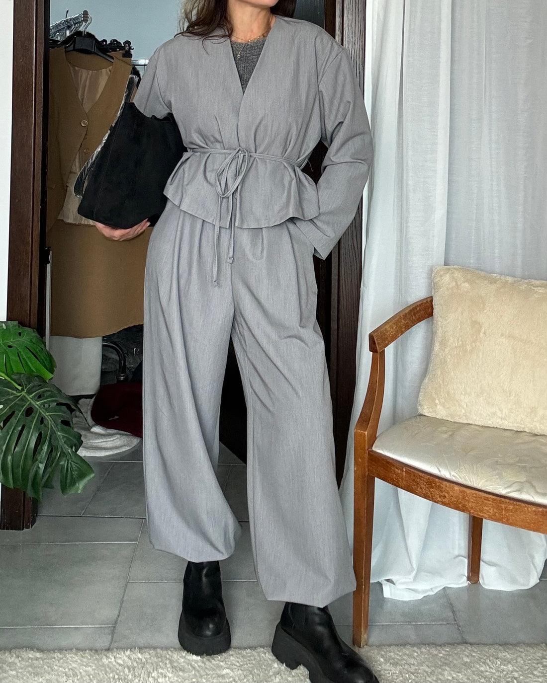 Due pezzi invernale casual composto da Camicia sartoriale ampia con colletto a revers e maniche...