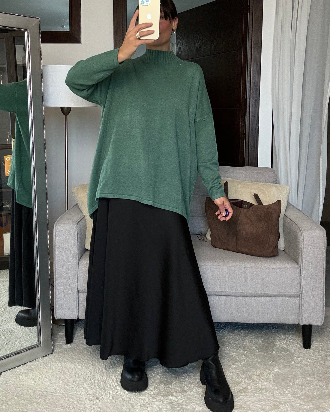 Pullover soffice scollo a barca misto lana azzurro polvere