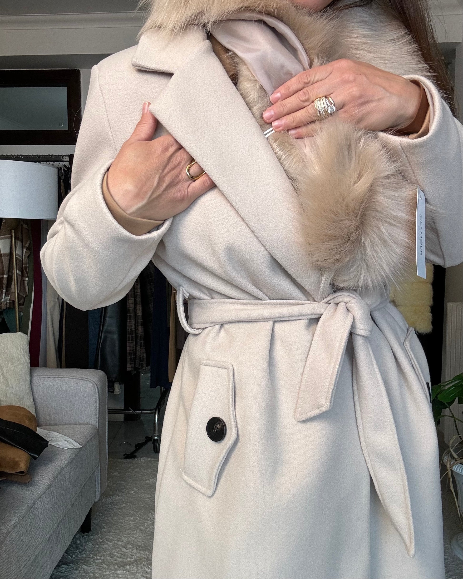 Cappotto ghiaccio con collo eco pelliccia rimovibile
