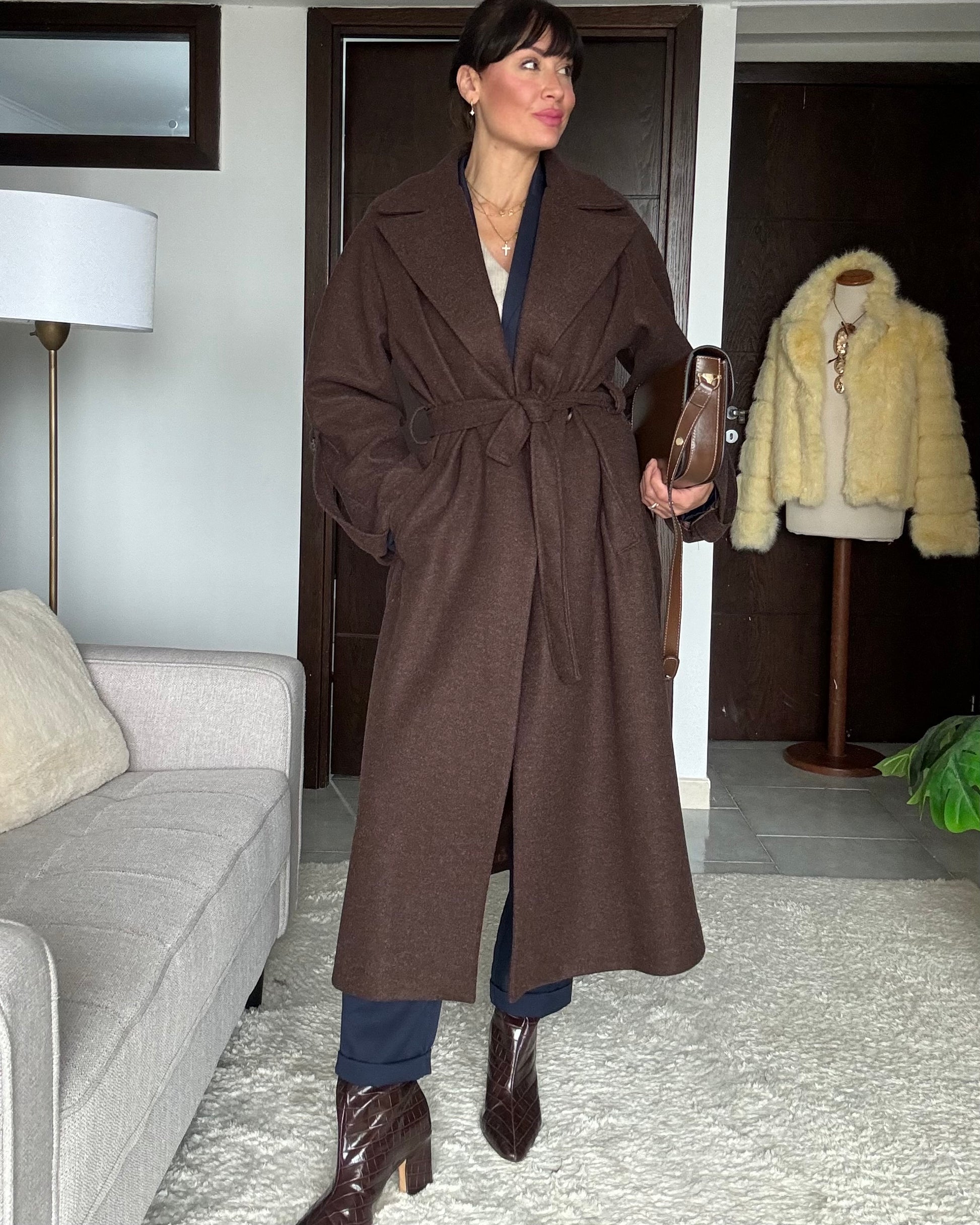 Il cappotto arriva alla caviglia la Modella è alta circa 170 cm