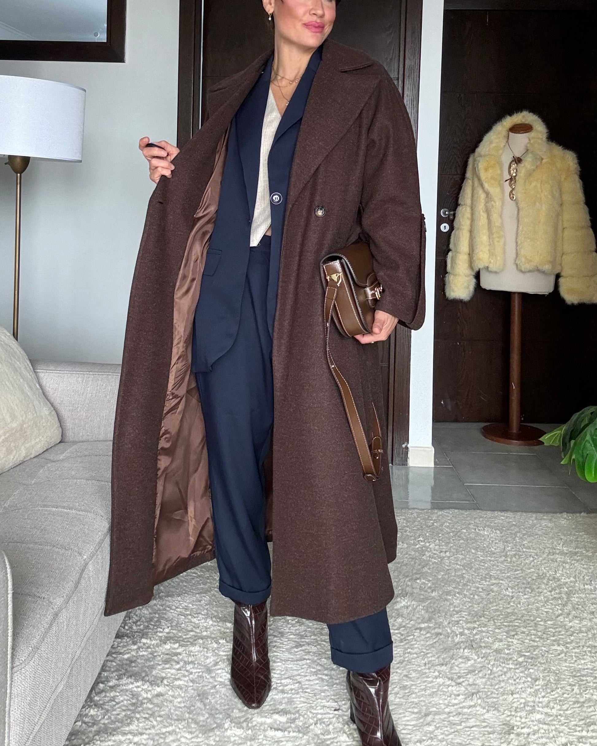 Cappotto leggermente oversize doppio petto con fit molto morbido e scivoloso .