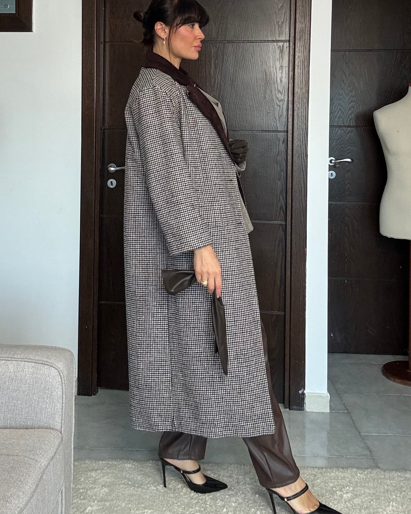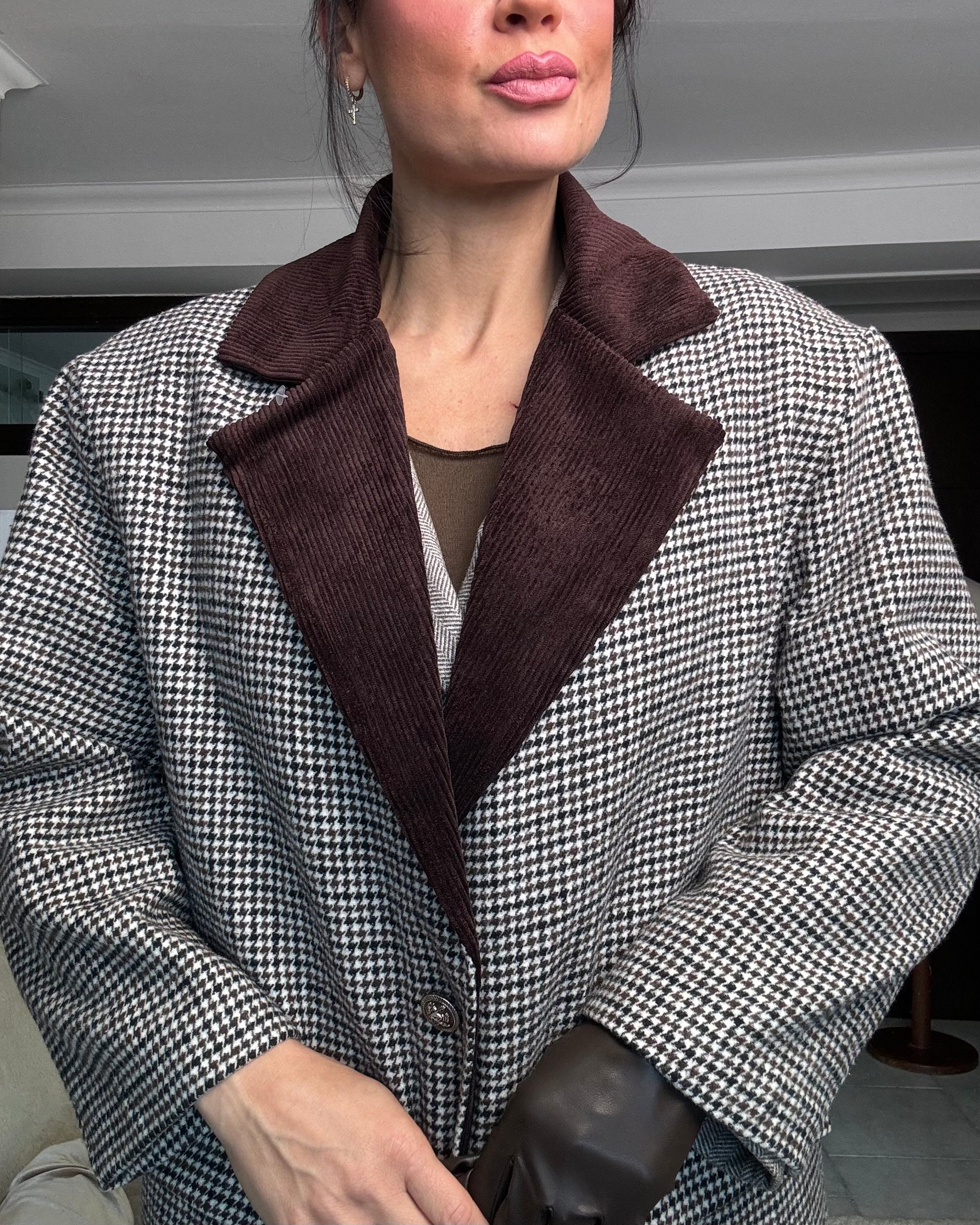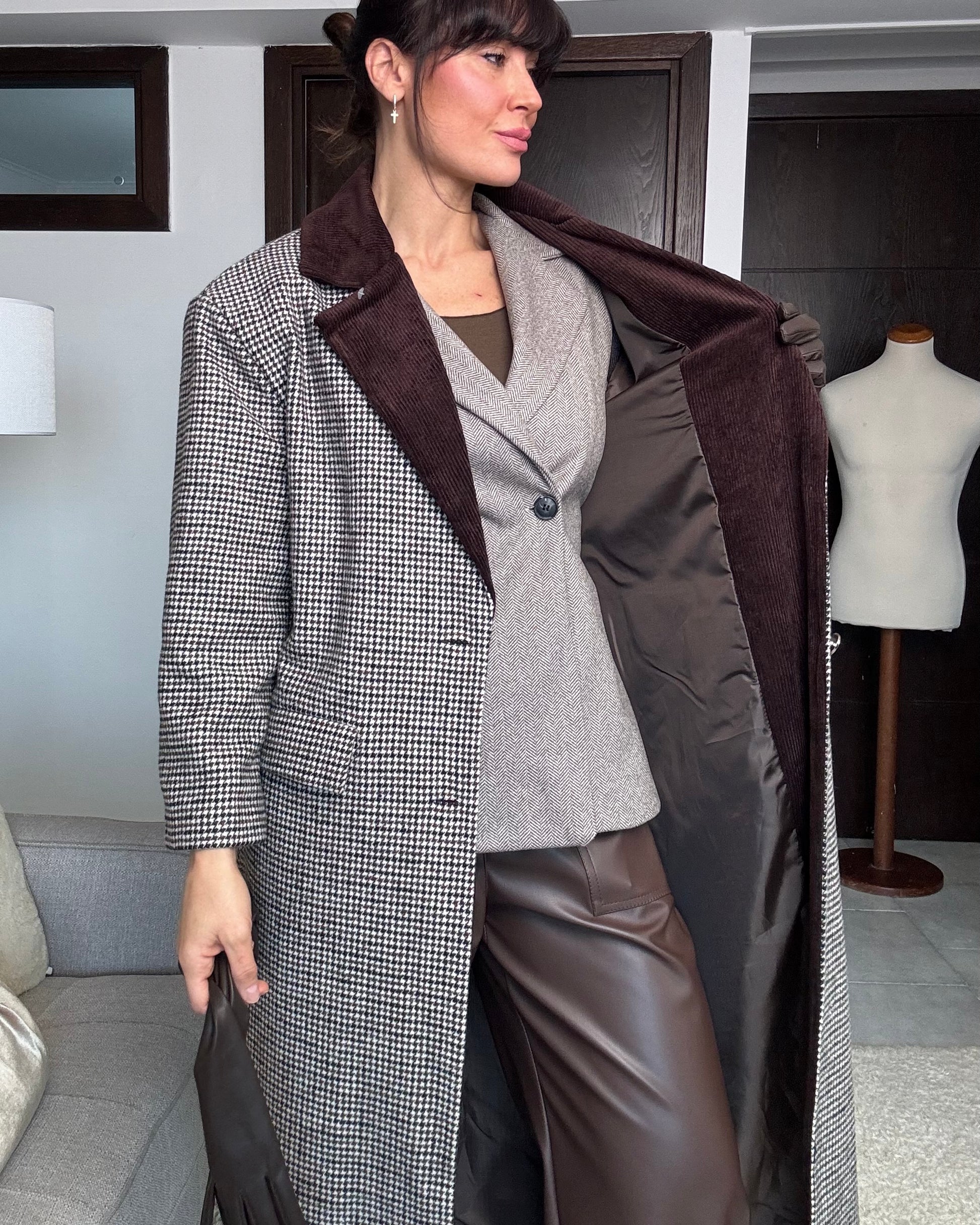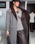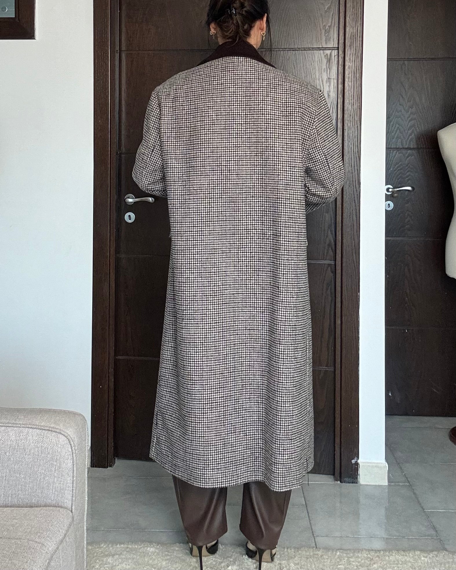 Cappotto lungo “Principe di Galles “ con collo in velluto rigato