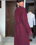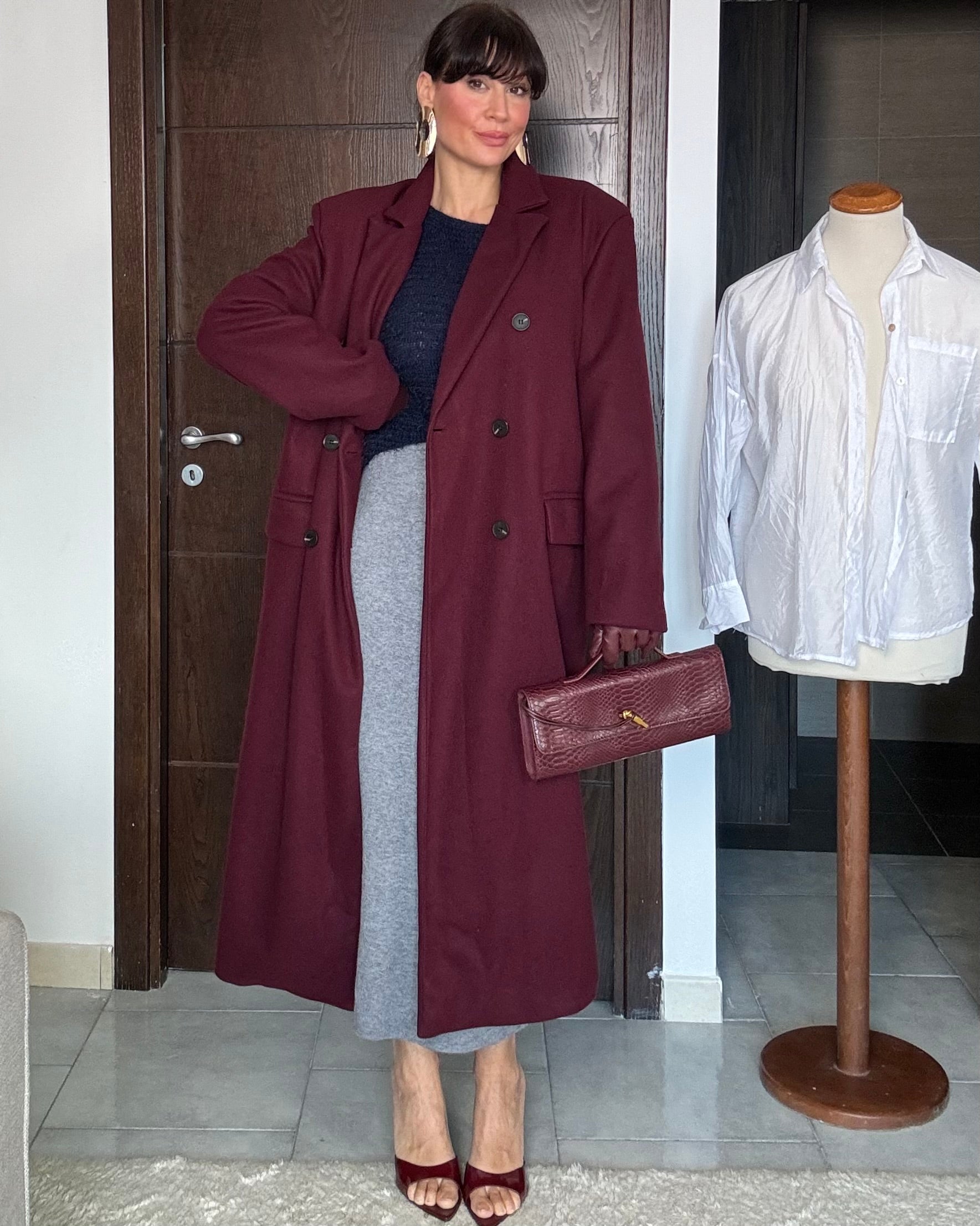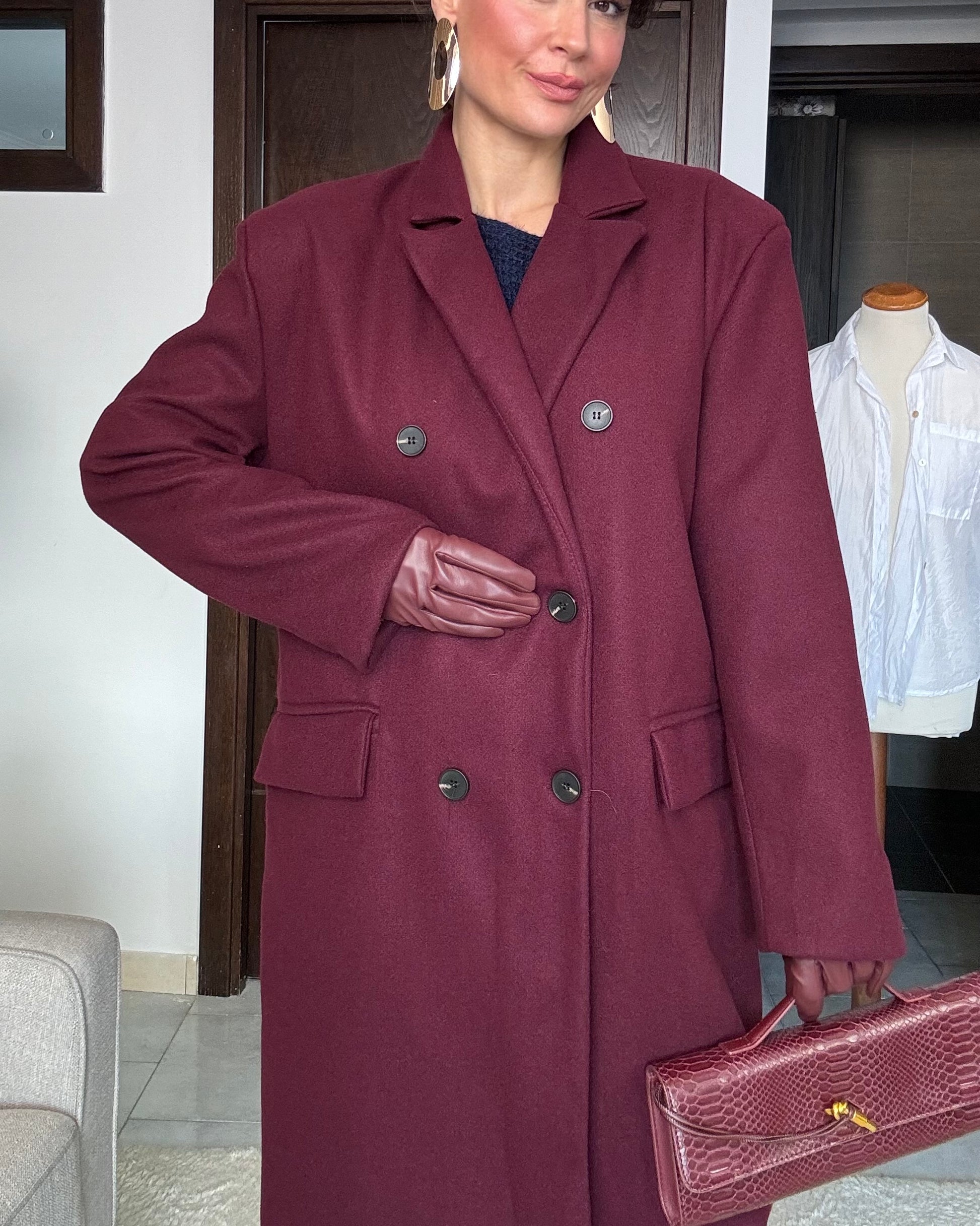 Cappotto dalle spalline super imbottite strutturate taglio trapezio.