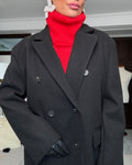 Cappotto dalle spalline super imbottite strutturate taglio trapezio.