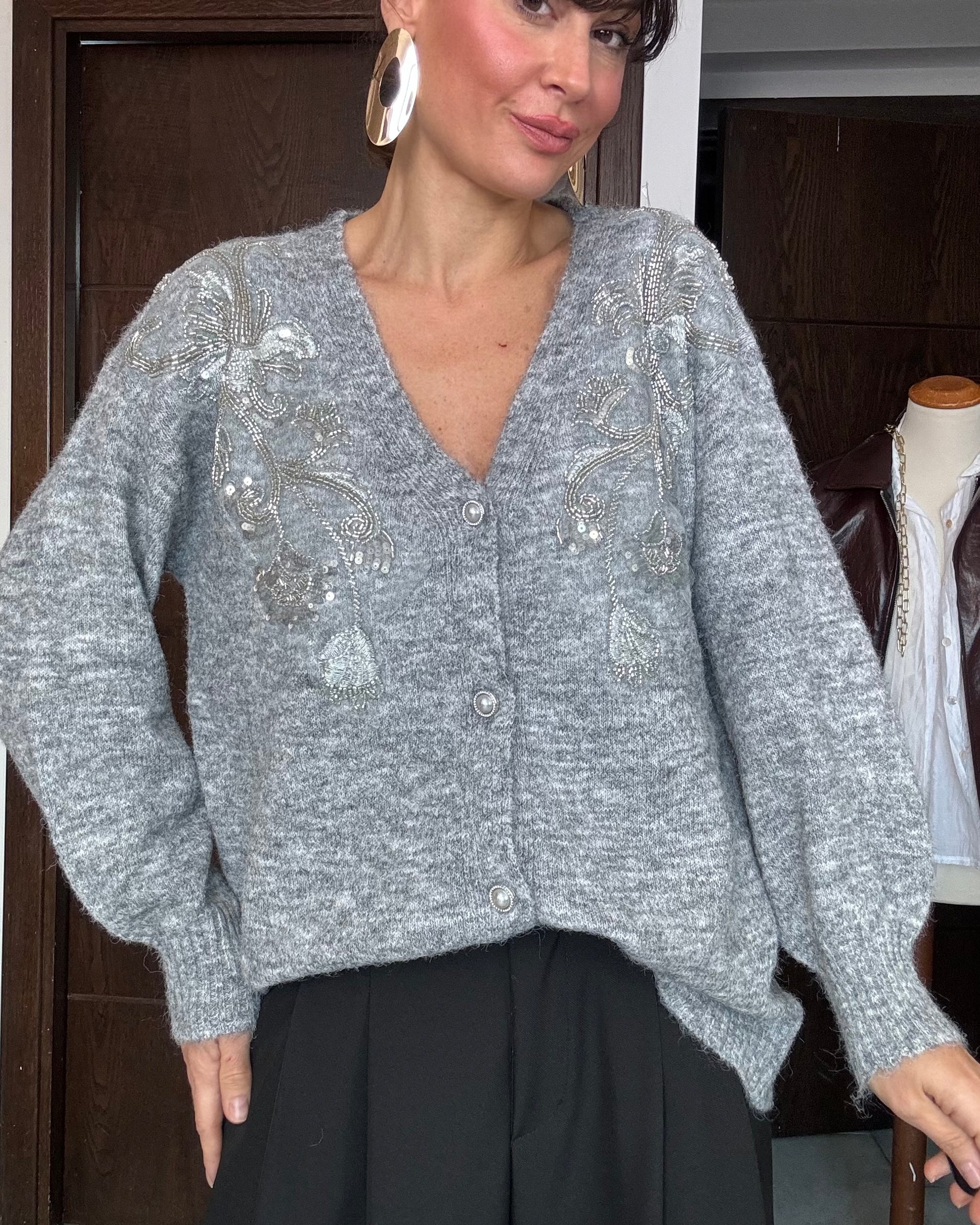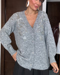 Cardigan misto lana con paillettes grigio