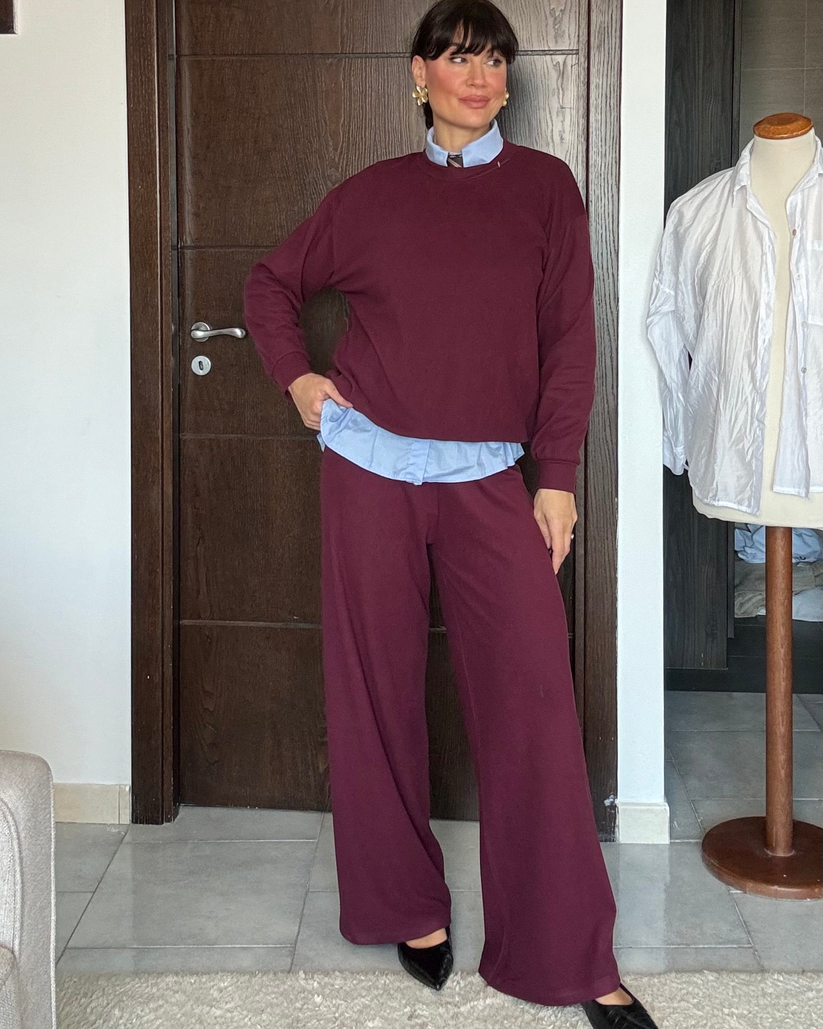Felpa e pantalone palazzo con elastico in vita