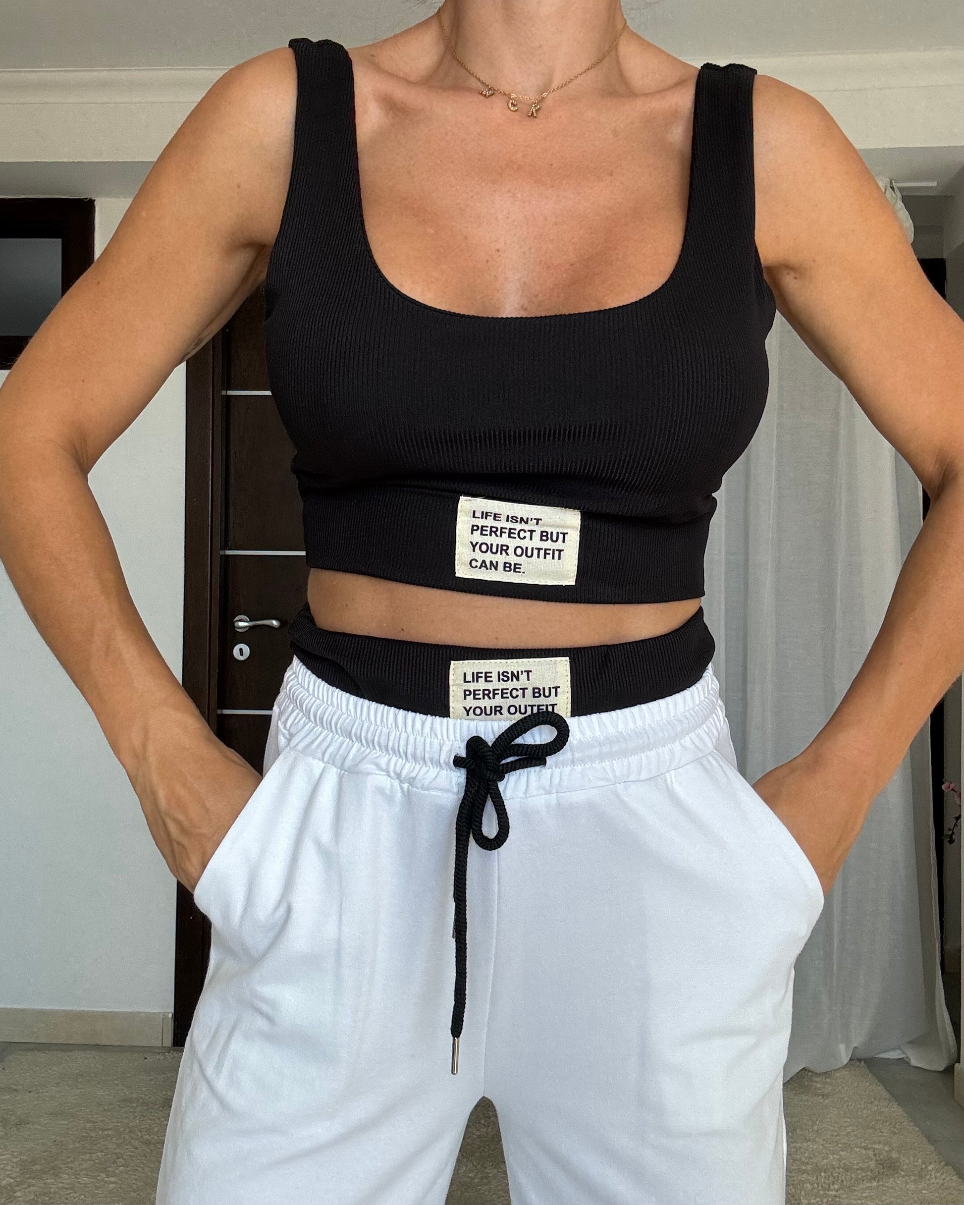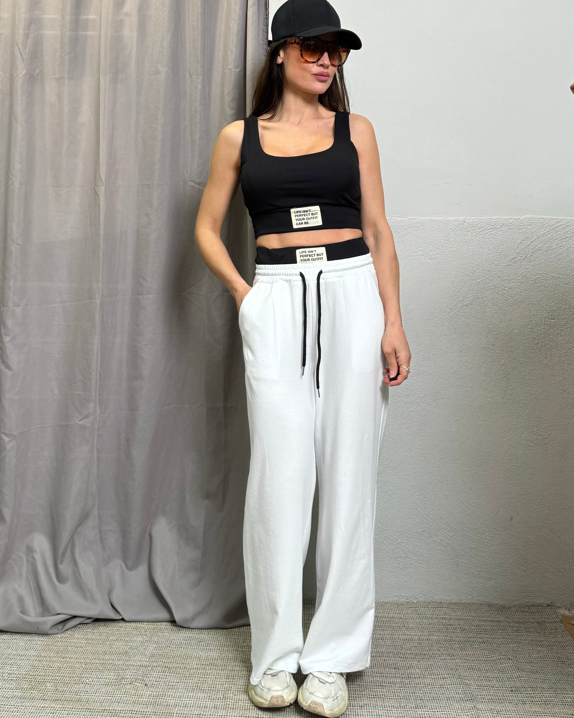 Coordinato Set Gym top e pantalone 100% cotone nero/white