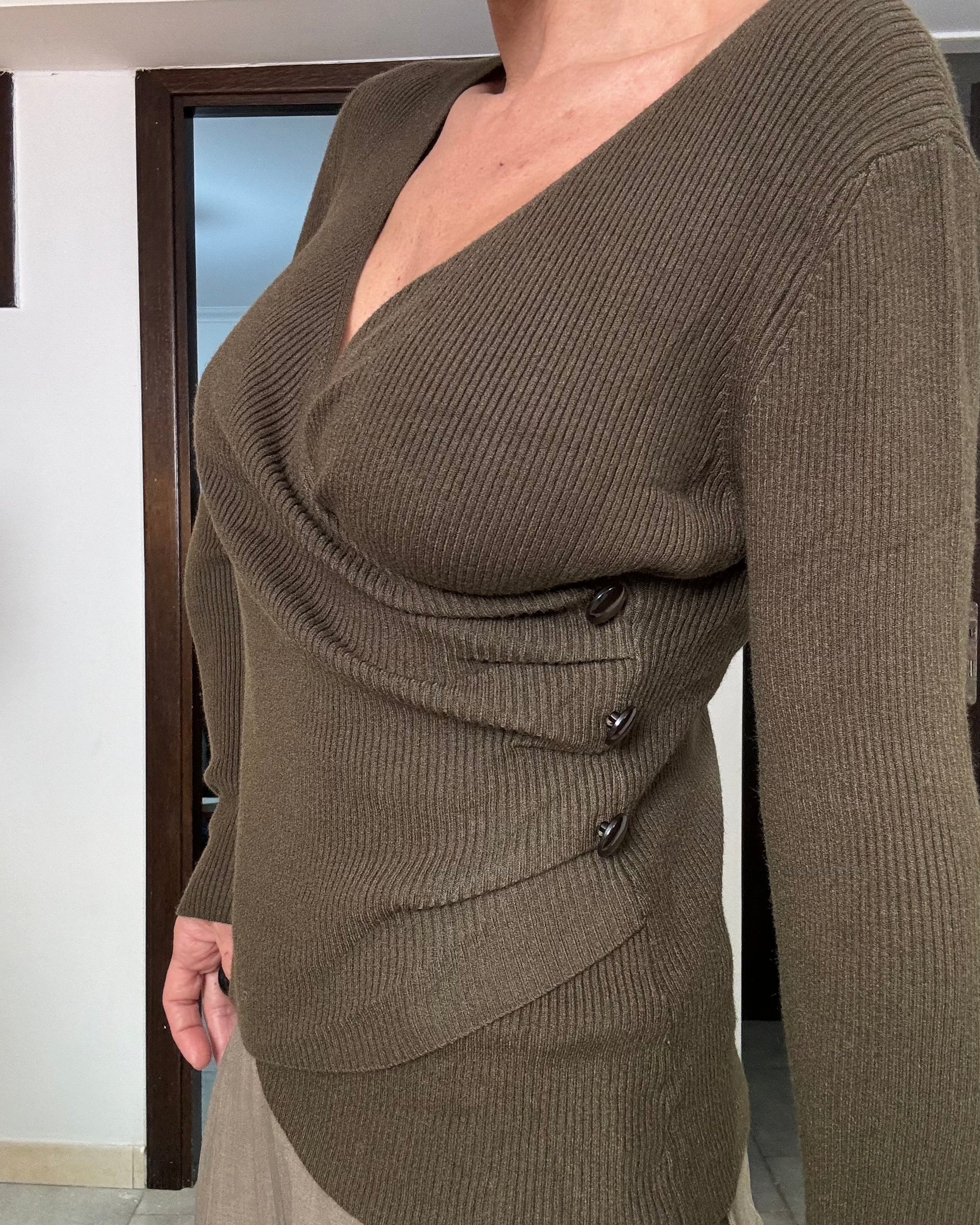 Maglia/ sotto giacca incrociata verde scuro in calda viscosa