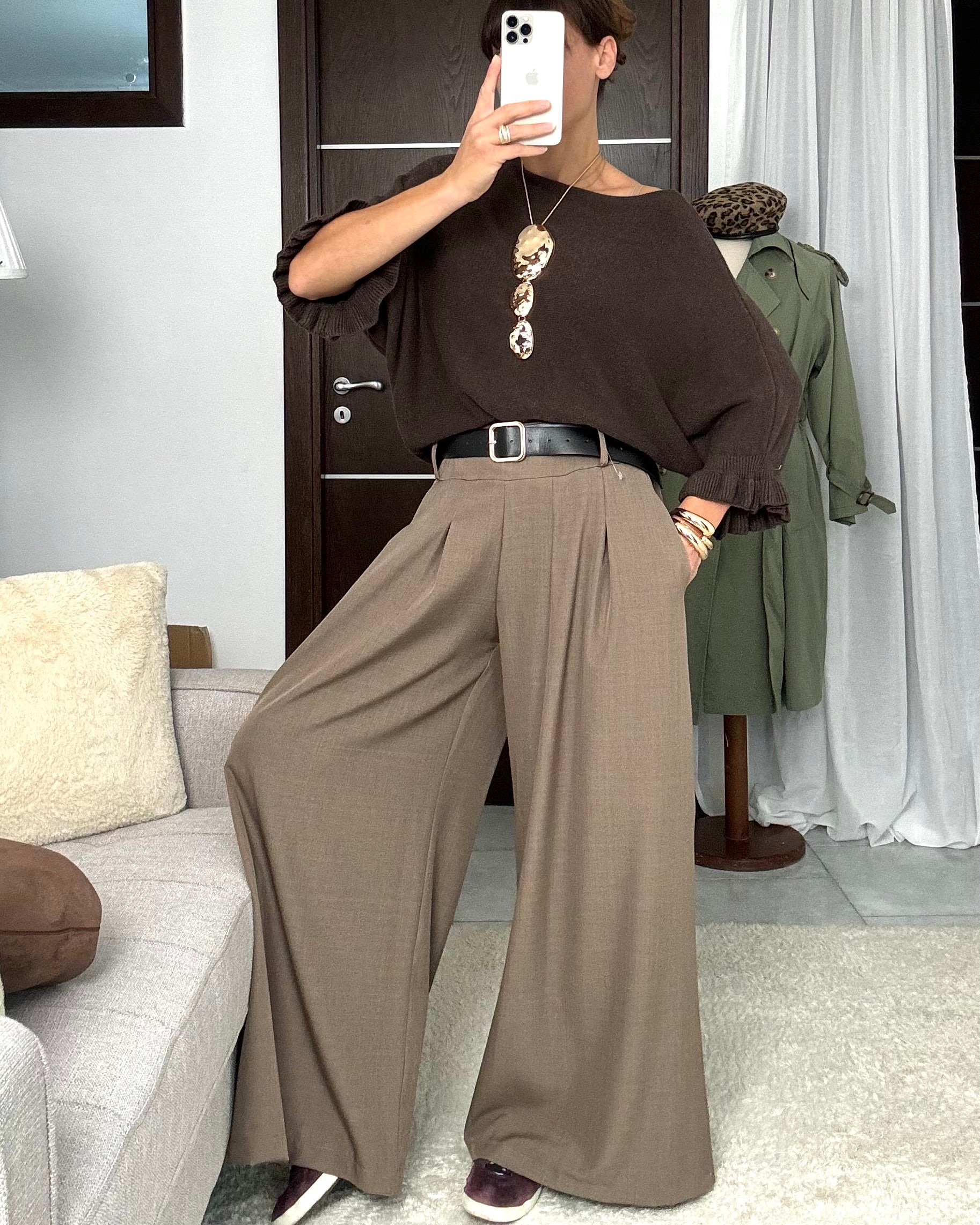 Pantalone Angel fango con cintura