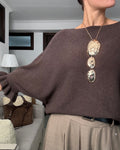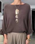 Morbidissimo pullover in calda viscosa ; manica 3/4 con rouches , scollo a barca